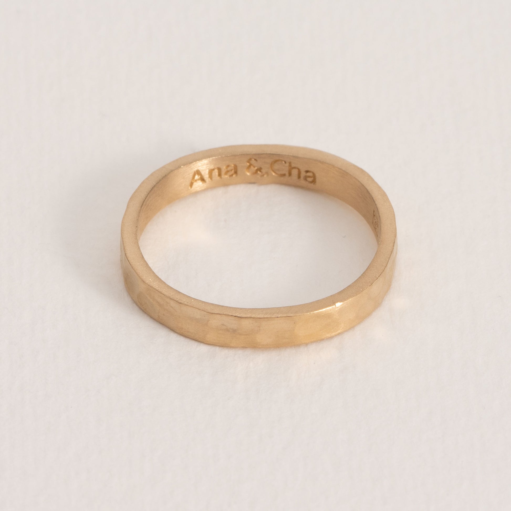 La bague Azélia à la finition mate et martelée est idéale pour nuancer vos accumulations.