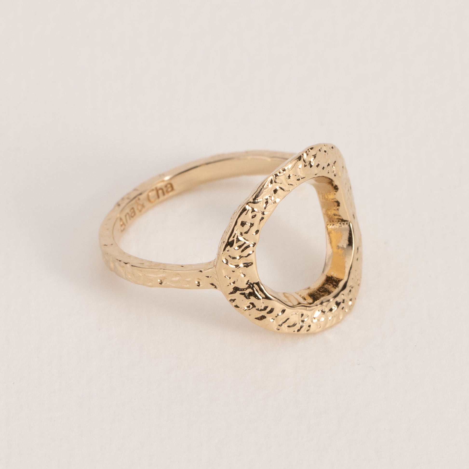 On aime le contraste entre la texture martelée et le design épuré de la forme de la bague Jeanne.