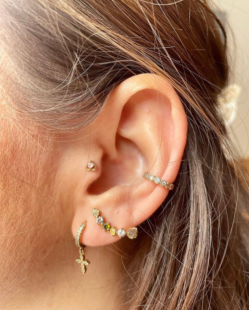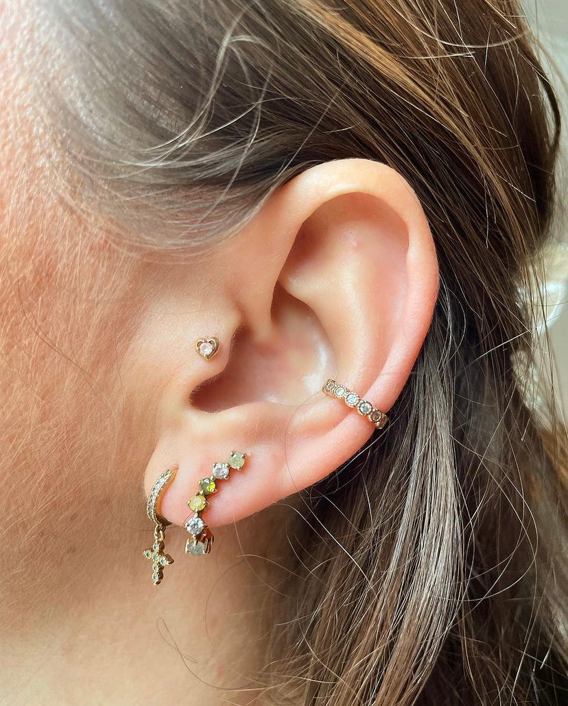 Confectionnée en argent sterling avec un placage en or jaune 18 carats et ornée de labradorite naturelle et de zircons cubiques verts, blanc étincelant, vert et jaune glacés. La collection propose des boucles d’oreilles et des bagues délicates qui fonctionnent comme une pièce maîtresse lorsqu’elles sont portées seules ou ajouteront un niveau de détail surprenant lorsqu’elles sont associées à d’autres bijoux. Une iridescence exceptionnelle pour un éclat délicat.