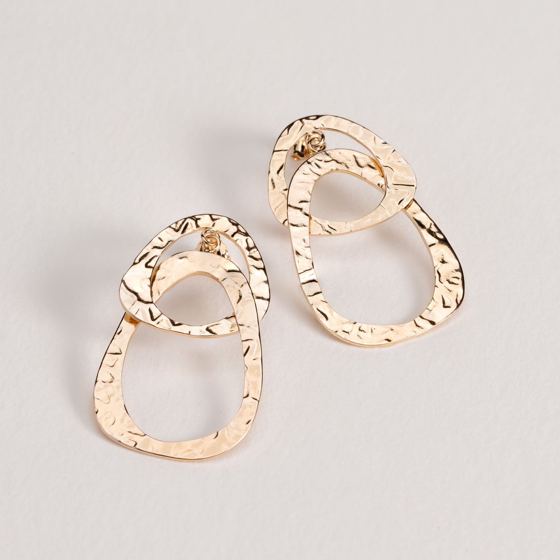 Laissez-vous envoûter par nos boucles d'oreilles Vesper ! Avec leurs anneaux délicatement entremêlés qui semblent flotter et leur texture martelée qui intensifie la brillance, elles sont l'accessoire parfait pour illuminer votre look.
