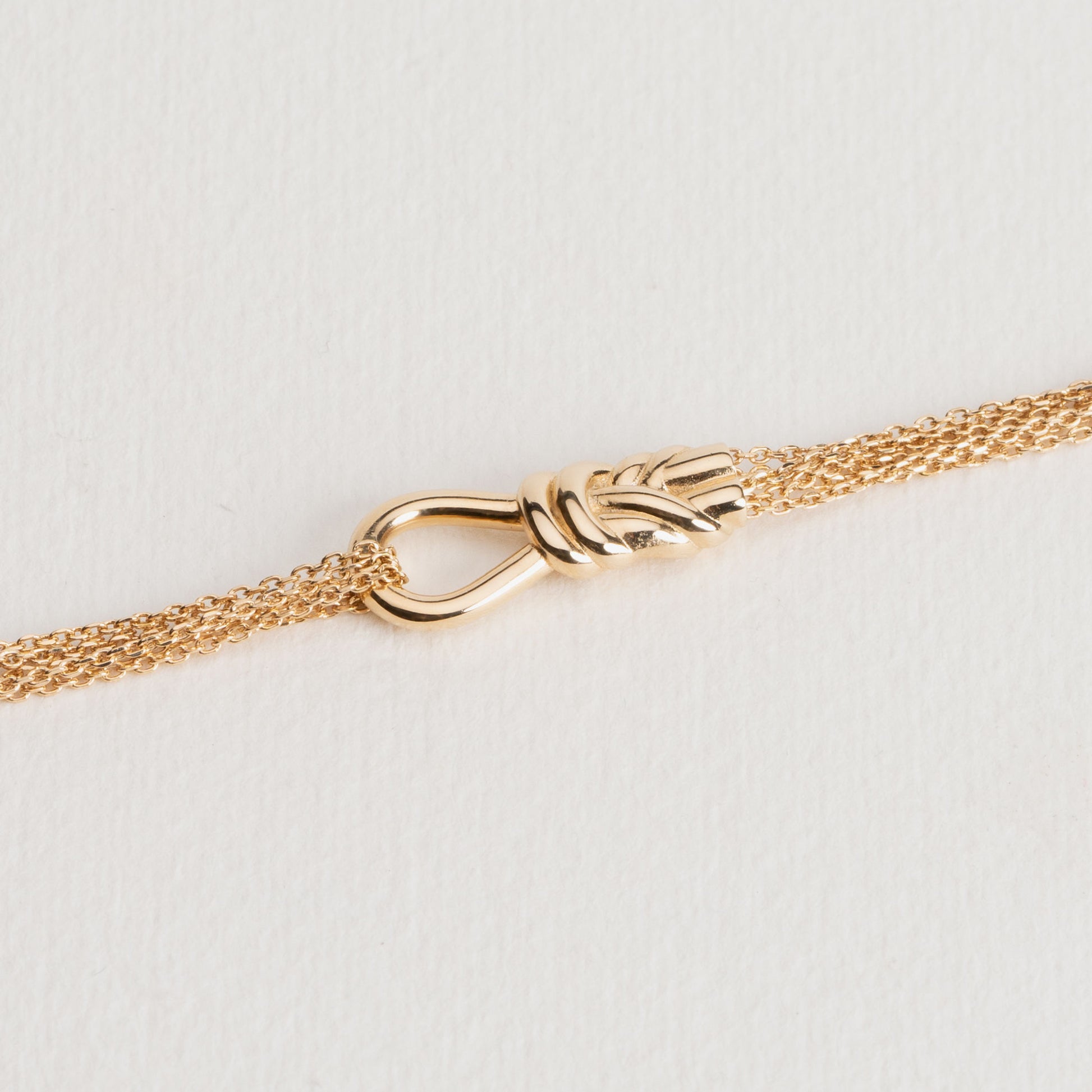 Le bracelet Kelly incarne l'élégance ! Un joli contraste entre un nœud signature, à la finition lisse et brillante, et des chaines délicates.