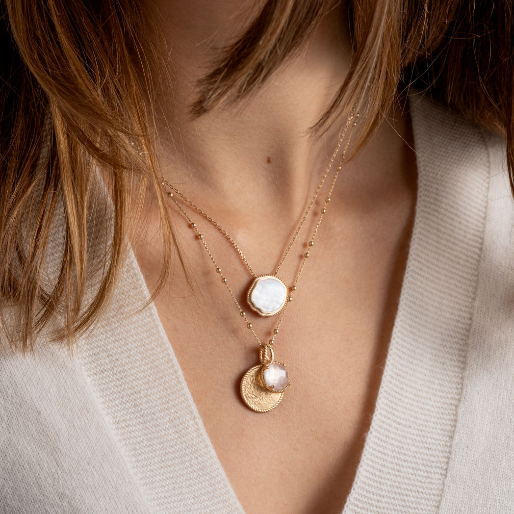 La chaine Césarine ornée de ses petites boules plaquées or, accompagne pendentifs et médailles. Elle est l'indispensable de votre boite à bijoux.