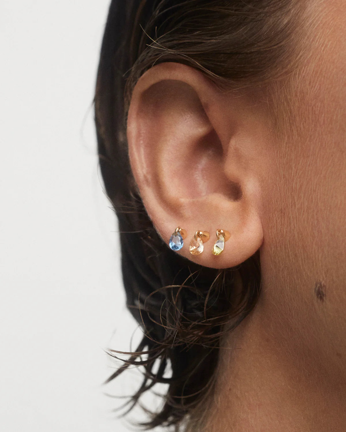 Piercing individuel en plaqué or avec un pendentif de zircon bleu en forme de goutte