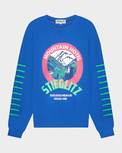 Le sweat Humberto mélange des imprimés et des broderies pour sublimer l' ambiance de la Sierra Nevada. Coupe surdimensionnée et idéale pour les vallées.