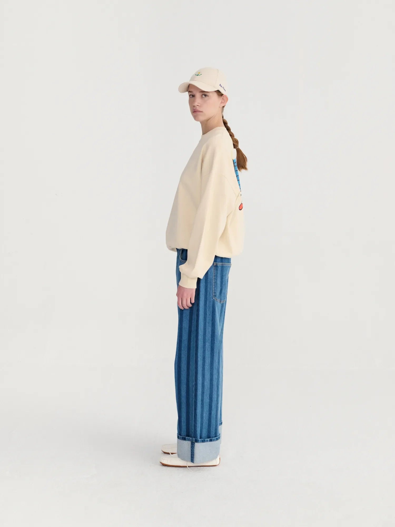 Sweat-shirt blanc cassé. Coupe légèrement ample, épaules tombantes et tissu extensible. Taille normalement, prenez votre taille habituelle. Fabriqué au Portugal.